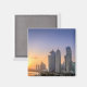 Imán fotográfico de una colorida puesta de sol sobre el horizonte con rascacielos en la Cornisa en el centro de la ciudad de Doha, capital del país del Golfo Qatar.