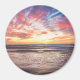 Imán fotográfico redondo con una colorida puesta de sol con grandes nubes sobre el mar del Norte y la playa de Kijkduin en una noche de verano en La Haya, en la costa oeste de los Países Bajos.