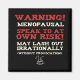 Un poco de humor Para todas las mujeres mayores y damas de ahí afuera! ¿Sensación hormonal o menopáusica? ¡Avísenle a todos con este divertido diseño! Cuenta con un texto en negrita negro y rojo que dice "¡Advertencia! Menopáusica. Hable a su propio riesgo. Puede que arremetan irracionalmente sin provocación".