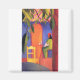 Café Türkisches (II) 1914. Aceite en madera contrachapada. 60 × 35 cm. Vivió durante una época particularmente innovadora para el arte alemán, que vio el desarrollo de los principales movimientos expresionistas alemanes, así como la llegada de los sucesivos movimientos vanguardistas que se estaban formando en el resto de Europa. Como un verdadero artista de su época, Macke sabía cómo integrar en su pintura los elementos de la vanguardia que más le interesaban. August Macke nació en Meschede, Alemania. Su padre, Agosto Friedrich Hermann Macke (1845-1904), era un constructor y su madre, Maria Florentine, née Adolph (1848-1922), procedía de una familia agrícola de la región alemana de Sauerland. La familia vivió en Brüsseler Straße hasta los 13 años de agosto. Después vivió la mayor parte de su vida creativa en Bonn, con la excepción de algunos períodos que pasó en el lago Thun en Suiza y varios viajes a París, Italia, Holanda y Túnez. En París, donde viajó por primera vez en 1907, Macke vio el trabajo de los impresionistas, y poco después fue a Berlín y pasó unos meses en el estudio de Lovis Corinth. Su estilo se formó en el modo del impresionismo francés y el posimpresionismo y luego pasó por un periodo Fauve. En 1909 se casó con Elisabeth Gerhardt. En 1910, a través de su amistad con Franz Marc, Macke conoció a Kandinsky y por un tiempo compartió la estética no objetiva y los intereses místicos y simbólicos de Der Blaue Reiter. La reunión de Macke con Robert Delaunay en París en 1912 iba a ser una especie de revelación para él. El cubismo cromático de Delaunay, que Apollinaire había llamado orfanismo, influyó en el arte de Macke desde ese momento en adelante. Las ventanas de sus tiendas pueden considerarse una interpretación personal de las ventanas de Delaunay, combinadas con la simultaneidad de imágenes encontradas en el Futurismo italiano. La exótica atmósfera de Túnez, donde Macke viajó en 1914 con Paul Klee y Louis Moilliet, fue fundamental para la creación del enfoque luminista de su último periodo, durante el cual produjo una serie de obras ahora consideradas obras maestras. La obra de August Macke puede ser considerada como expresionismo (el movimiento que floreció en Alemania entre 1905 y 1925), y también como parte del fauvismo. Las pinturas se concentran principalmente en expresar sentimientos y estados de ánimo en lugar de reproducir una realidad objetiva, generalmente distorsionando el color y la forma. La carrera de Macke se vio interrumpida por su temprana muerte en el frente de Champagne en septiembre de 1914, el segundo mes de la Primera Guerra Mundial. Su último cuadro, Adiós, representa el ánimo de tristeza que se asentó después del estallido de la guerra. El expresionismo fue un movimiento cultural, inicialmente en poesía y pintura, que se originó en Alemania a principios del siglo XX. Su rasgo típico es presentar el mundo bajo una perspectiva totalmente subjetiva, distorsionándolo violentamente para obtener un efecto emocional y transmitiendo vívidamente emociones e ideas personales. Los artistas expresionistas intentaron expresar el significado de "estar vivo" y experiencia emocional en lugar de la realidad física. El expresionismo surgió como un 'movimiento vanguardista' en poesía y pintura antes de la primera Guerra Mundial; en los años de Weimar fue apreciado por una audiencia masiva, con su popularidad en Berlín, durante la década de 1920. El expresionismo se exhibe en muchas formas artísticas, como la pintura, la literatura, el teatro, el cine, la arquitectura y la música. El término a menudo implica angustia emocional. En un sentido general, pintores como Matthias Grünewald y El Greco pueden ser llamados expresionistas, aunque en la práctica el término se aplica principalmente a las obras del siglo XX. El énfasis expresionista en la perspectiva individual también fue una reacción al positivismo y otros movimientos artísticos como el naturalismo y el impresionismo. Der Blaue Reiter (El jinete azul) fue un grupo de artistas del Neue Künstlervereinigung München en Munich, Alemania. Der Blaue Reiter fue un movimiento alemán de 1911 a 1914, fundamental para el expresionismo, junto con Die Brücke, fundado la década anterior en 1905. Les Fauves (Francés para las Bestias Silvestres) fue un grupo de artistas modernos de corta vida y poco rígido de principios del siglo XX, cuyos trabajos enfatizaron cualidades de género y un fuerte color sobre los valores representativos o realistas conservados por el impresionismo. Mientras que el estilo del Fauvismo comenzó alrededor de 1900 y continuó más allá de 1910, el movimiento como tal duró solamente tres años, 1905-1907, y tuvo tres exhibiciones. Los líderes del movimiento fueron Henri Matisse y André Derain. La pintura es un modo de expresión y los formularios son numerosos. El dibujo, la composición o la abstracción y otras estéticas pueden servir para manifestar la intención expresiva y conceptual del profesional. Las pinturas pueden ser naturalistas y representativas (como en una pintura de vida o paisaje), fotográficas, abstractas, cargadas de contenido narrativo, simbolismo, emoción o de naturaleza política. La pintura es la práctica de aplicar pintura, pigmento, color u otro medio a una superficie (base de soporte). En el arte, el término describe tanto el acto como el resultado, que se llama pintura. Las pinturas pueden tener como soporte superficies como paredes, papel, lienzo, madera, vidrio, lacado, arcilla o hormigón. Los cuadros pueden estar decorados con hojas de oro y algunos cuadros modernos contienen otros materiales como arena, arcilla y trozos de papel. Una parte de la historia de la pintura en el arte oriental y occidental está dominada por motivos e ideas espirituales; ejemplos de este tipo de pintura van desde obras de arte que representan figuras mitológicas sobre cerámica hasta escenas bí