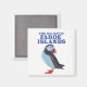 Afiche del viaje de aves de Puffin en las Islas Feroe, de estilo vintage.
