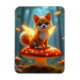 Esta encantadora obra de arte presenta una entrañable criatura parecida a un zorro con brillantes alas de hadas, descansando pacíficamente sobre un hongo rojo radiante en el corazón de un bosque mágico. Pequeñas luciérnagas se deslizan en una luz suave y dorada, añadiendo brillo y asombro a la escena soñadora. La piel seda de la criatura (sombreada en tonos suaves de crema, oro y plata) y sus alas translúcidas se ilustran con suaves detalles, mezclándose a la perfección con el fondo polvoriento y de color pastel. Cada elemento se presenta cuidadosamente para evocar una sensación de calma, curiosidad y asombro de los cuentos de hadas. Perfecto para ilustraciones de cuentos, decoración caprichosa de casa, tarjetas de felicitación o vestimenta para los amantes de la fantasía, esta obra irradia encanto y magia, ideal para cualquiera que crea en el dulce espíritu de las encantadas criaturas de los bosques.