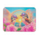 Una obra de arte vibrante y caprichosa, con dos elegantes gorriones con gafas de sol, contemplando una brillante puesta de sol sobre el océano. Rodeado de florecientes flores rosadas y de ondulados tonos pastel, esta escena tropical de inspiración retro irradia diversión de verano y encanto juguetón. Perfecto para los amantes de la playa, los aficionados a las aves y los amantes del arte colorido y agradable.