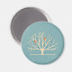 Un imán con un fondo verde silencioso sobre la parte superior es un árbol amarillo claro con dos siluetas de pájaro naranjas sentadas sobre las ramas.