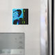 En este imán de inspiración Art Déco destacan los azules y el verde limón.