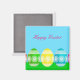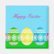 Hermoso y lindo diseño de Pascua de huevos de Pascua de colores múltiples, decorados verde, azul y amarillo, contra un fondo polvoriento azul, que recuerda a un cielo de Primavera azul claro.
