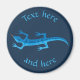 Icono de lagarto azul con formas tribales en el cuerpo. Dos campos de texto personalizado en círculo.