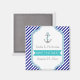 Azul marino, rayas blancas y magneto de Save the Date de boda náutico con ancla. Un diseño de patrón de rayas elegante con rayas diagonales azul marino y blancas, un ancla gris con un corazón turquesa y cuerda y su texto en un marco con una pancarta aqua. Moderno pero con un aspecto vintage en cierto sentido. Puede cambiar el fondo y el color del texto eligiendo entre más de 200 colores del gráfico de colores de Zazzle. Este diseño clásico es una plantilla completamente personalizable y es parte de un conjunto de boda perfecto para una boda náutica o de playa de verano.