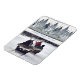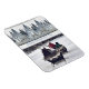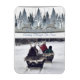 Este imán de refrigerador de vacaciones personalizado presenta maravillas de invierno azules "oh qué divertido que está salpicando a través de la nieve" diseñado por deluxephotos. Foto de 4 personas acreditada por Joao Monteiro en unsplash.com.