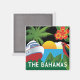 El ilustracion colorido de las Bahamas con cruceros, loro, palmeras, flores de hibisco y el nombre de las Bahamas con una fuente de deco vintage. ¡recuerdos de crucero!