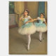 Hermosas bailarinas con tutús blancos y corsés azul turquesa con un toque de amarillo en el estilo romántico, inspiradas de las bailarinas de Degas. Este imán adornara neveras o cualquier otra superficie metálica y encantará a todos los amantes del ballet y de la danza.