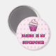 Un regalo grandioso, es un imán de frigorífico para los que disfrutan cocinando. La imagen es un quequito con el eslogan "Hacer es mi superpoder" en negrita con letras rosas. El funda de los quequitos es de color rosa y los remolinos de la cereza también son de color rosa pálido. El diseño se completa con un fondo rosa pálido con pastelitos rosados dispersos.