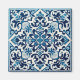 Este producto tiene un diseño intrincado con un fondo azul oscuro y patrones ornamentales blancos. El diseño recuerda a los estilos tradicionales de cerámica o porcelana, que pueden interesar a los amantes de la estética clásica o vintage.