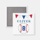 Ball de béisbol Banderas Bunting Flags Kids Birthday Magnet. El diseño tiene banderas de béisbol y de racimo en tonos rojos, blancos y azules. Añade tu nombre y edad.
