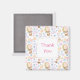 Un imán de agradecimiento con un lindo y caprichoso patrón. Globos de aire caliente y bonitas nubes con caras entre estrellas y corazones y globos. Los suaves colores pastel componen este adorable diseño. Un cuadrado blanco sobre la parte superior con el texto dentro.