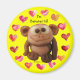 Gracioso Monkey Love Magnet: Haz tus propios imanes personalizados como favores de cumpleaños, regalos de novedad o como un divertido imán de refrigerador para tu mejor amigo o hombre de mono. Este mono personalizado rodeado por un círculo de 15 corazones acuarelas puede ser completamente personalizado. Actualmente se lee: "Soy bananas 4 U".... pero vaya comodín y edite el texto para hacer su propio mensaje especial. Para cambiar el color de fondo, pulse el botón "personalizar it" para mostrar el diseño también. ¡Diviértete! También puedes poner tu foto en el lugar del mono.