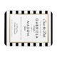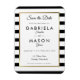Con un fondo clásico de rayas blancas y negras, esta elegante tarjeta magnética para guardar la fecha presenta un elegante borde de Relieve metalizado de oro falso encuadrando los detalles de fecha establecidos en la tipografía de moda. Diseñado por Thisisnotme©