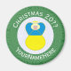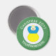 Imán redondo para decoración de Navidades con un ángel vestido con la bandera de Ucrania. El ángel se encuentra en el interior de un círculo blanco fractal de cuadrados escabrosos con un fondo de cuadrados verdes. Añade tu propio texto, si lo deseas. Personaliza el ángel con un nombre y un personalizar con el año. Divertido pastor de medias. Comparte tu herencia ucraniana durante la temporada de fiestas. Slava Ukraini.
