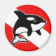 Esta bonita ballena orca o asesina nada frente a una bandera de buceo. Esto hará un gran regalo para los buzos de buceo que aman las Orcas.