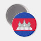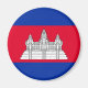 La bandera camboyana es una tribanda bicolor horizontal con en el centro un edificio. Los colores utilizados en la bandera son azul, rojo, blanco. La proporción de la bandera camboyana es de 2:3. La bandera de Camboya fue adoptada en 1993. El primer uso del diseño actual de la bandera fue en 1948. El último cambio en el diseño actual de la bandera camboyana fue en 1993.