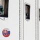 Bandera de Eslovaquia pintada en una pared de ladrillo negro
