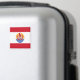 La bandera de la Polinesia Francesa se adoptó en 1984. Dos bandas horizontales rojas encajan en una banda ancha blanca en una proporción de 1:2:1; centradas en la banda blanca hay un disco con un patrón de olas azul y blanco que representa el mar en la mitad inferior y un patrón de rayas doradas y blancas que representa el sol en la mitad superior; una canoa polinesia recorre el patrón de las olas; la canoa tiene una tripulación de cinco estrellas que simbolizan los cinco grupos de islas tradicionales; rojo y blanco son Polinesia colores nesianos.