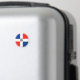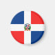 La bandera de la República Dominicana, tal como se describe en el Artículo 96 de la Constitución Dominicana, presenta una cruz blanca centrada que se extiende hasta los bordes y divide la bandera en cuatro rectángulos —los superiores son azules (lado de la ala) y rojos, y los inferiores son rojos (lado de la ala) y azules. Un pequeño escudo de armas con un escudo con el diseño de la bandera y apoyado por una rama de laurel (izquierda) y un frontón de palma (derecha) está en el centro de la cruz; encima del escudo, una cinta azul muestra el lema nacional: Dios, Patria, Libertad (Dios, Patria, Libertad). Debajo del escudo, aparecen las palabras República Dominicana en una cinta roja (esta cinta roja aparece en versiones más recientes con sus puntas apuntando hacia arriba). En el centro del escudo, flanqueado por tres lanzas (dos de ellas portando pancartas dominicanas) a cada lado, hay una Biblia con una pequeña cruz encima y abierta al Evangelio de Juan, al capítulo uno o al capítulo 8, versículo 32, que dice Y la verdad nos hará libre (Y la verdad te hará libre). El azul de la bandera representa la libertad, el blanco para la salvación, el rojo para la sangre de los héroes. El diseño civil sigue el mismo diseño, pero sin la carga en el centro. La bandera fue diseñada por el líder de los trinitarios, el padre fundador (Padre de la Patria) Juan Pablo Duarte. Para crear banderas distintas para uso estatal y civil, el escudo de armas, adoptado en 1844, fue colocado en la bandera del estado. El lema había sido la contraseña de los trinitarios.