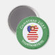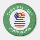 Imán redondo para la decoración Navidad con un ángel vestido con la bandera de los Estados Unidos de América. El ángel se encuentra en el interior de un círculo blanco de cuadrados chillones con un fondo de cuadrados verdes. Añade tu propio texto, si lo deseas. Personaliza con un nombre y un personalizar con el año. Divertido pastor de medias. Honre su herencia norteamericana durante la temporada de vacaciones.