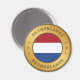La bandera de los Países Bajos se inserta en un anillo de oro falso redondeado. La palabra "Países Bajos" aparece en la parte superior e inferior del diseño y tiene un efecto presionado. El par de tres estrellas decorativas se han diseñado con un efecto prensado.