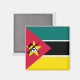 La bandera de Mozambique fue adoptada el 1 de mayo de 1983. Incluye la imagen de un AK-47 con una bayoneta pegada al cañón y es la única bandera nacional en el mundo que tiene un rifle tan moderno. La bandera está basada en la bandera del Frente Mozambiqueño de Liberación (FRELIMO), el principal fiesta político en Mozambique. La bandera del FRELIMO, usada por un breve periodo después de que el país se independizara de Portugal, parece la bandera actual pero carece del emblema, con franjas horizontales verdes, negras y amarillas separadas por fimbriaciones blancas y un triángulo rojo en el pabellón. El negro, el verde y el amarillo se derivaron de la bandera del Congreso Nacional Africano, usada en Sudáfrica. Al independizarse, los colores se reorganizaron para formar la bandera nacional, en diagonales que emanaban de la parte superior del pabellón. Sobre esto había una rueda cognoscitiva blanca que contenía el azadón, rifle, libro y estrella que aparecían en la bandera actual. La bandera fue alterada en 1983; los colores estaban dispuestos en franjas horizontales, y la estrella del marxismo se hizo más grande. Se han presentado propuestas para una nueva bandera no partidaria. El verde representa las riquezas de la tierra, las fibras blancas significan paz, el negro representa el continente africano, el amarillo simboliza los minerales del país y el rojo representa la lucha por la independencia. El rifle representa la defensa y la vigilancia, el libro abierto simboliza la importancia de la educación, la casa representa la agricultura del país, y la estrella simboliza el marxismo y el internacionalismo