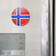 Muestra tu orgullo nacional por el hermoso país de Noruega con esta brillante bandera redonda.