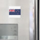 La Bandera Nacional de Nueva Zelanda se basa en el pabellón azul marítimo británico, un campo azul con la bandera de la Unión en el cantón o esquina superior del pabellón, aumentada o desfigurada con cuatro estrellas rojas centradas en cuatro estrellas blancas, que representan la constelación de la Cruz del Sur