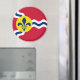 Magnet con bandera de la ciudad de St. Louis; bandera roja con olas blancas y azules y fleur-de-lys azules en círculo amarillo