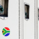 Bandera de Sudáfrica. Bandera sudafricana de gran calidad. Tenemos otros productos de regalo de Sudáfrica, camisetas de Sudáfrica con huellas frontal y trasera, tazas de Sudáfrica, tarjetas de Sudáfrica y mucho más para Sudáfrica