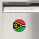 La bandera de Vanuatu (Bislama: flaeg blong Vanuatu) fue aprobada el 18 de febrero de 1980. El verde representa la riqueza de las islas, el rojo simboliza la sangre que une a la humanidad como seres humanos, y el negro como pueblo ni-Vanuatu. El Primer Ministro de Vanuatu, el padre Walter Lini, pidió que se incluyeran las figuras amarillas y negras para que los negros se destacaran. La forma amarilla Y representa la forma de las islas de Vanuatu en el mapa y la luz del evangelio que atraviesa el patrón de las islas en el Océano Pacífico (aproximadamente el 83% de la población de Vanuatu profesa el cristianismo). El emblema en negro es el colmillo de un jabalí, símbolo de personalizados y tradición, pero también de prosperidad. Se usa como un pendant en las islas, junto con dos hojas del árbol local de nombres. Se supone que estas hojas son una muestra de paz, y sus 39 folletos representan a los 39 miembros originales del Parlamento de Vanuatu.