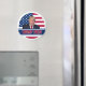 Frontera blanca del imán de la bandera estadounidense de Trump 2024, fondo de la bandera estadounidense, Trump de 2024 delineado en blanco.