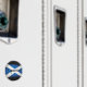 Nombre de la familia / clan Cameron en fuente estilo grunge en la bandera de la Cruz de San Andrés de Escocia