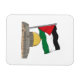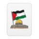 La bandera de Palestina encima de la Cúpula de la Roca en un fondo blanco y en el reverso la frase "Palestina Libre"