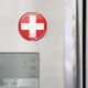 Muestra tu orgullo patrio por el hermoso país de Suiza con esta brillante bandera suiza redonda.