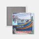 Magnífico imán de recuerdo impreso con una imagen de los coloridos barcos de pesca en el puerto de Marsaxlokk, Malta. Derechos de imagen de Bridget Edmonds.