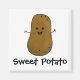 "Batata Dulce" en texto negro. Encima del texto hay una batata marrón adorable con una gran sonrisa feliz.
