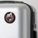 Este emblema circular estilo traje de tarjeta muestra a Harley Quinn guiñando el ojo sobre su hombro mientras sostiene una gran maleta.