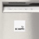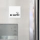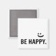 imán de cita inspiradora con el mensaje "sé feliz" en un diseño en blanco y negro con cara sonriente. Un regalo perfecto para alguien que está en recuperación o necesita algo de aliento en su vida.