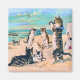 Los gatos y gatitos se divierten en la playa en este encantador personalizable de ilustracion vintage para añadir su propio texto.