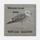 Los alquileres de casas y vacaciones se están volviendo cada vez más comunes, sobre todo en los lugares de playa. Facilite a sus huéspedes el acceso a su WiFi con este imán de refrigerador fácilmente personalizado. Una hermosa foto de una gaviota fue realzada digitalmente para parecerse a una pintura que resultó en una imagen única en la costa. La arena gris marrón en el fondo sirve de base para las palabras "bienvenidos a nuestra casa" y el código WiFi. Todo el texto puede ser personalizado para satisfacer sus necesidades.