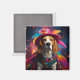 Un Beagle juguetón vestido con un disfraz vibrante y caprichoso contra un telón de fondo brillante y mágico. Este encantador diseño es perfecto para los amantes de los animales.