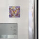 A magnet with an illustration of a beautiful gold and purple butterfly surrounded by white and purple flowers. It's done with an impasto style and just emanates beauty and grace.