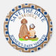 Marrón y azul personalizado Guardar el botón de fecha con un niño sentado al lado de un perro con un tema de béisbol.