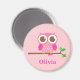 Un pequeño regalo para el pequeño. Este diseño tiene una bonita imagen de una lechuza rosa con grandes ojos de cortesía y mini corazones sobre su vientre. El búho está encaramado en una rama con hojas. Agradable, divertido y jovencito, este diseño es genial para las niñas. ¡Personaliza con el nombre del niño!