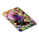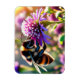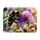 Una abeja vibrante se cierne delicadamente sobre una flor morada floreciente. El cuerpo a rayas de la abeja contrasta con los pétalos suaves, destacando la belleza de la polinización.